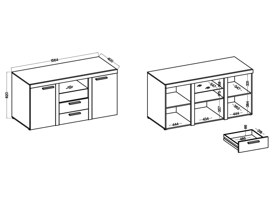 rozměry: šířka: 156,4 cm, hloubka: 40,5 cm, výška: 82 cm