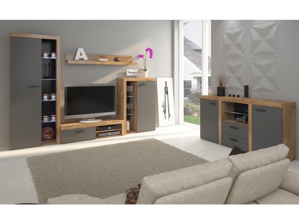 Komoda Rizo je nejen skvělým doplňkem k bytové stěně Rizo. Stejně výborně poslouží jako samostatný kus nábytku. Komoda má univerzální využití a nabízí dostatek úložného prostoru. Komoda je vyrobena z odolného a stálobarevného lamina. Komoda je dodávaná v demontu. Součástí balení je schematický montážní návod, včetně všech potřebných spojovacích prvků. Vyobrazené doplňky, LED osvětlení a dekorace nejsou v ceně.
