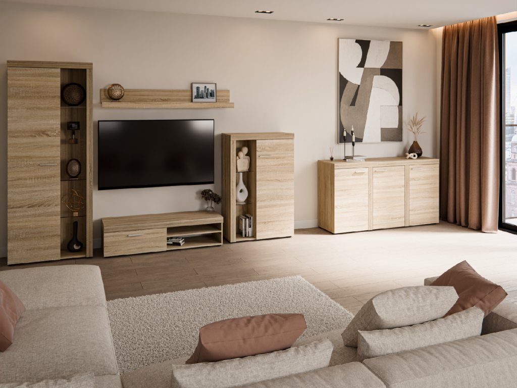 Moderní povrch v odstínu dub sonoma se hodí do různých interiérů a doplní jak klasický, tak i moderní styl bydlení. Komoda se snadno kombinuje s dalšími kusy nábytku.