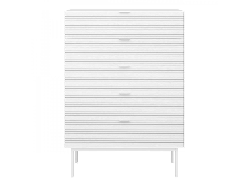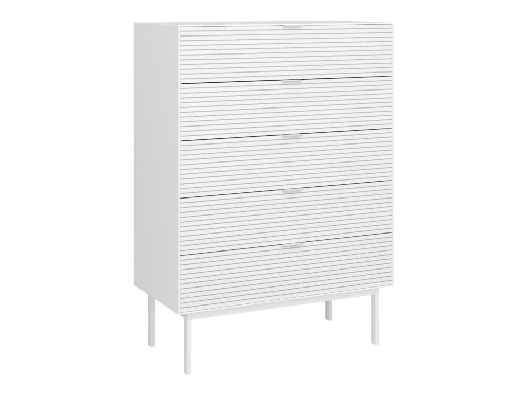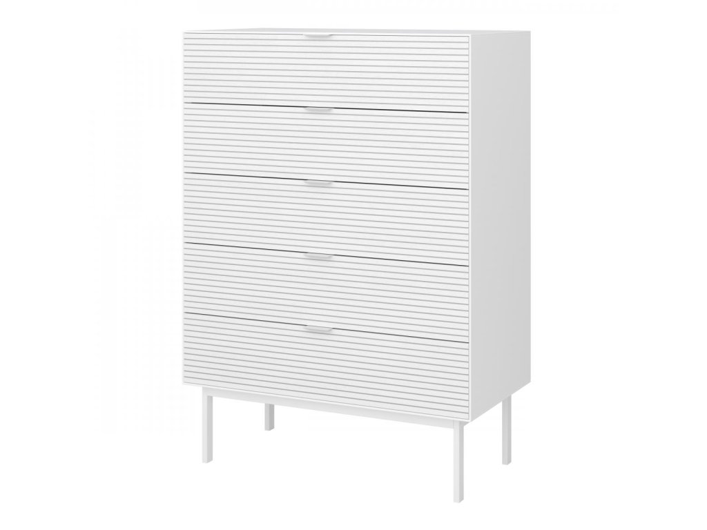 Široká komoda se 5 zásuvkami poskytuje dostatek místa pro uspořádání oblečení, dokumentů nebo drobných předmětů. Látkové šuplíky v některých variantách přidávají na variabilitě a estetice.