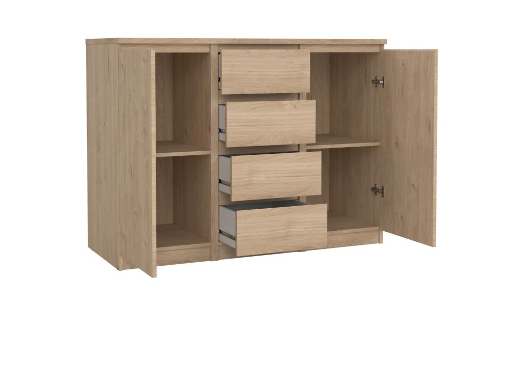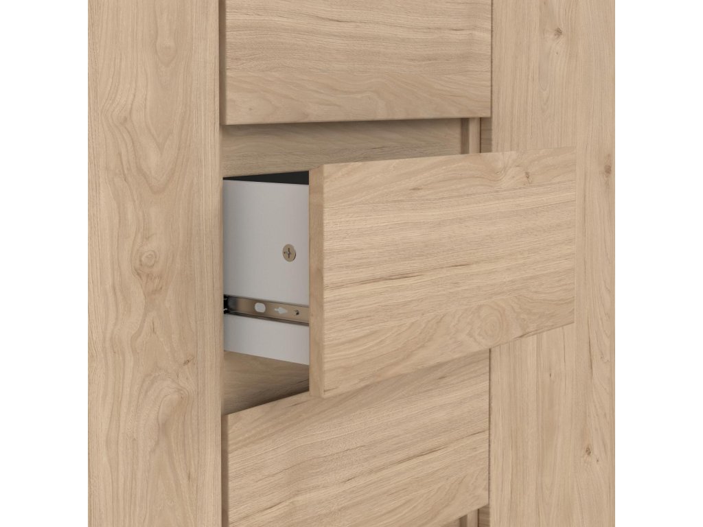 Komoda je vyrobena z kvalitního lamina v dekoru jackson hickory, které je odolné a snadno se udržuje.