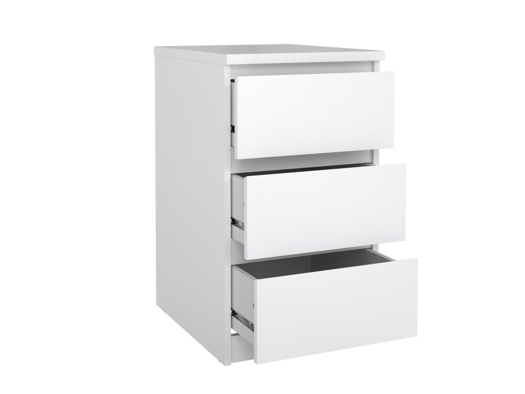 Komoda Simplicity v nadčasovém minimalistickém designu bez úchytek dodá moderní nádech vašemu interiéru. Díky svému provedení nabízí univerzální použití třeba jako noční stolek nebo zásuvková skříňka k psacímu stolu. Sortiment této řady vyrobené z kvalitního lamina nabízí noční stolky, postele, komody, botníky a další úložné prostory v široké škále barevných variant a velikostí.