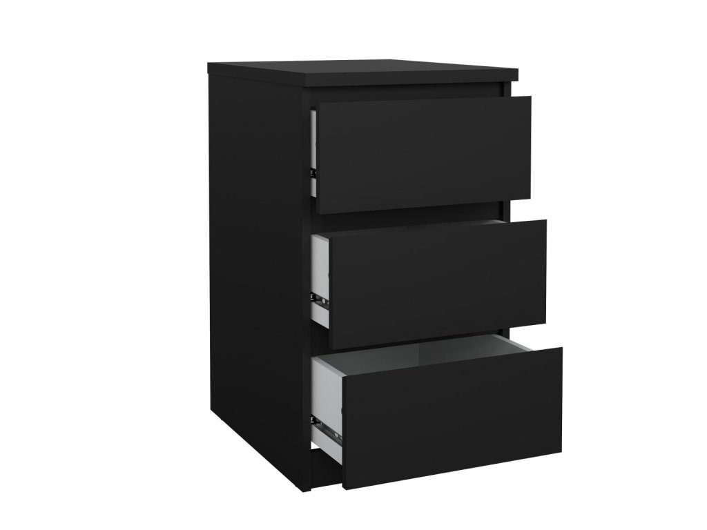 Tři zásuvky poskytují dostatek místa pro uložení drobností, dokumentů nebo oblečení. Komoda je vhodná jako noční stolek, zásuvková skříňka k psacímu stolu nebo samostatný úložný prvek.