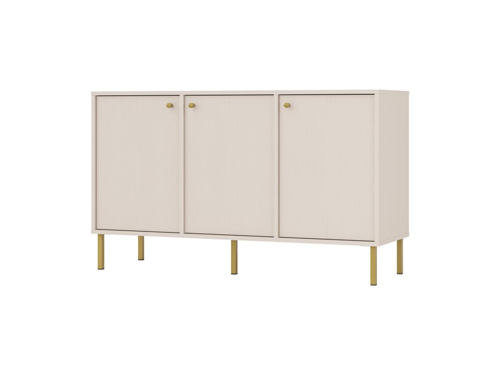 Design komody Tomila přináší klidnou a harmonickou atmosféru do vašeho interiéru. Béžová barva a zlaté úchytky dodávají na sofistikovanosti.