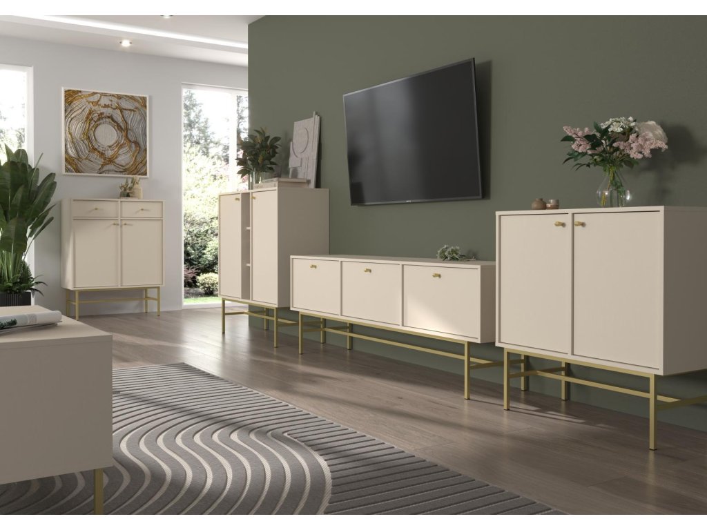Série Tomila nabízí noční, TV i konferenční stolky, vitríny a komody v široké škále tvarů, barev a typů noh.