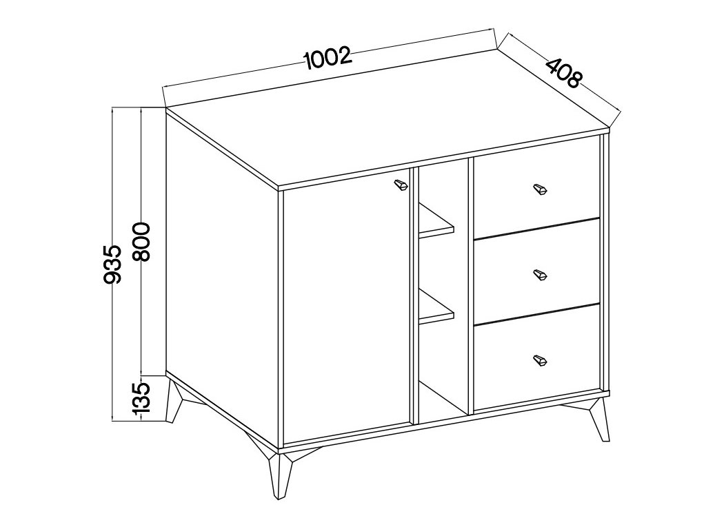 Komoda má výšku 93,5 cm, šířku 100,2 cm a hloubku 40,8 cm, což ji činí vhodnou do různých prostorů.