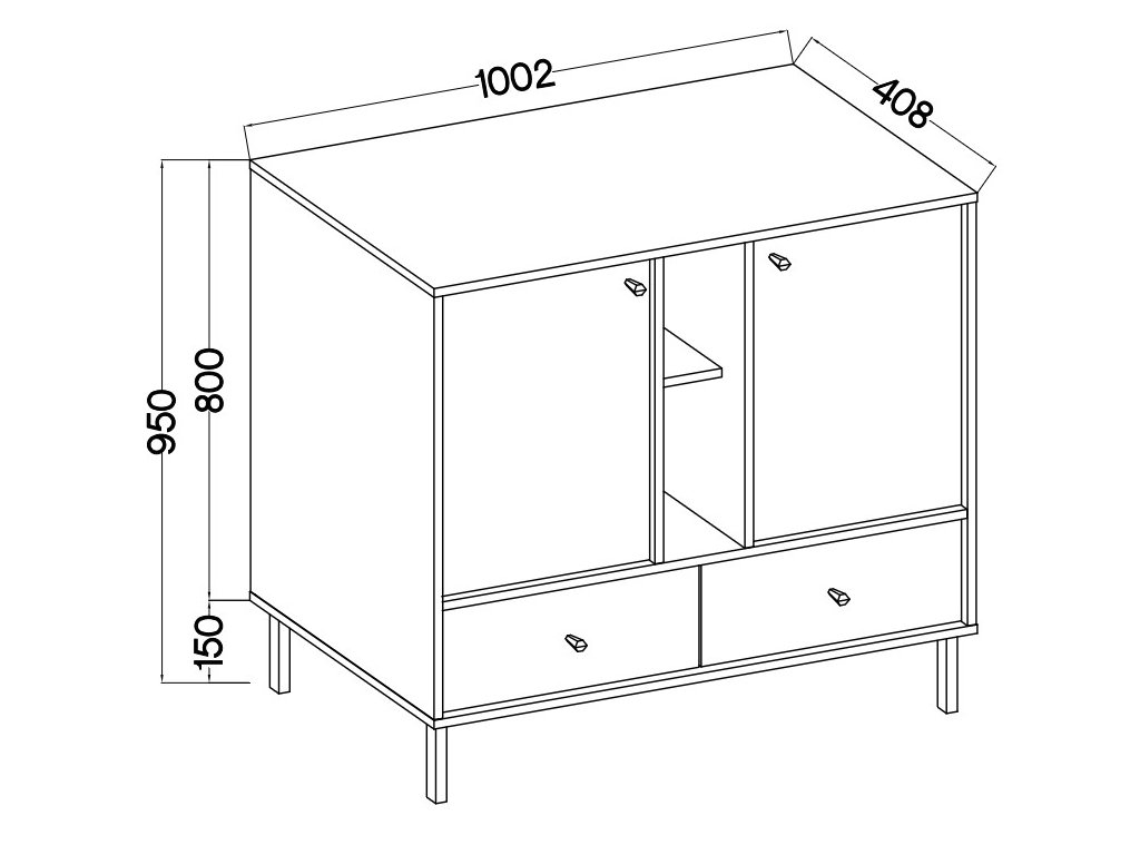 Komoda má výšku přibližně 95 cm, šířku 100,2 cm a hloubku 40,8 cm, což ji činí vhodnou do různých interiérů.