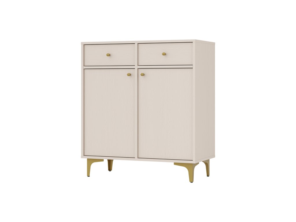 Design inspirovaný japonskou estetikou s béžovým provedením a zlatými úchytkami dodá interiéru jedinečný styl.