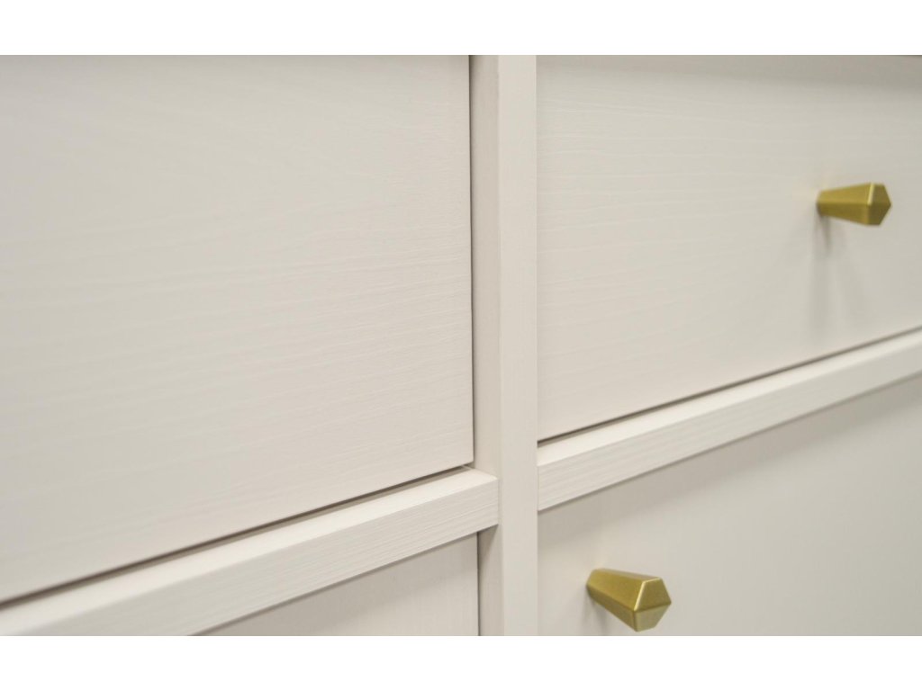 Minimalistický vzhled s béžovým provedením a zlatými úchytkami se hodí do různých interiérů a dodá prostoru osobitý styl.