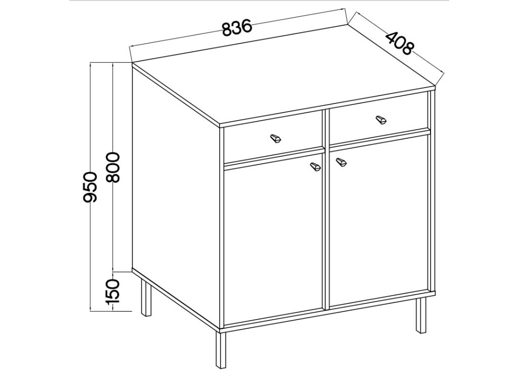 Komoda má výšku přibližně 95 cm, šířku 83,6 cm a hloubku 40,8 cm, což ji činí vhodnou do různých prostorů.