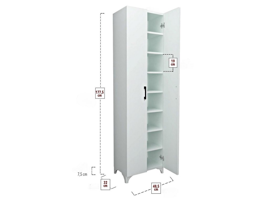 Dvoudveřová vysoká komoda je vyrobena z kvalitní LTD desky, která je nenáročná na údržbu. Tloušťka desky - 18 mm. Uvnitř komody jsou police. Barevné provedení je bílá. Dodáváme v demontovaném stavu.Buďte první, kdo napíše příspěvek k této položce.
