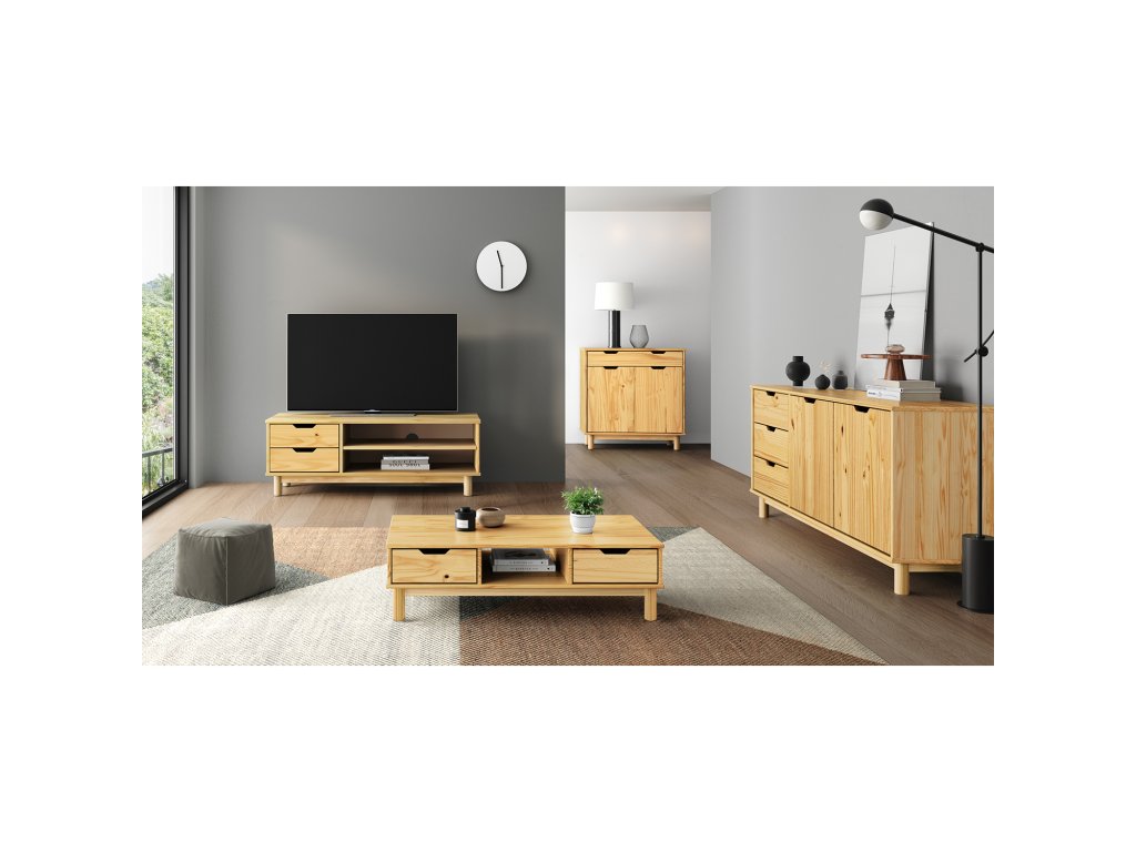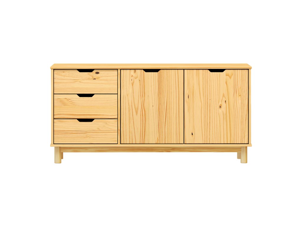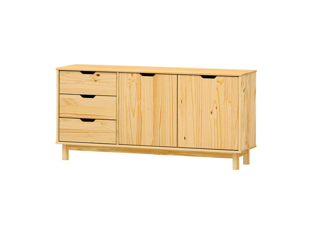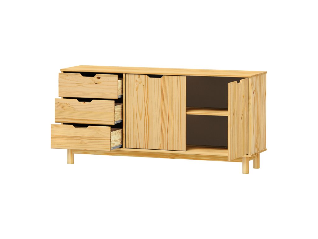 materiál masiv borovice, lakované provedení 3 zásuvky s kovovými pojezdy, 2 dvířka, 1 policeDoplňkové parametry