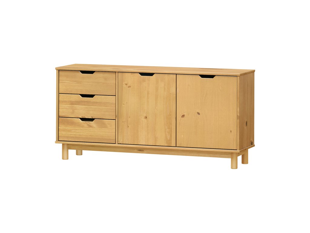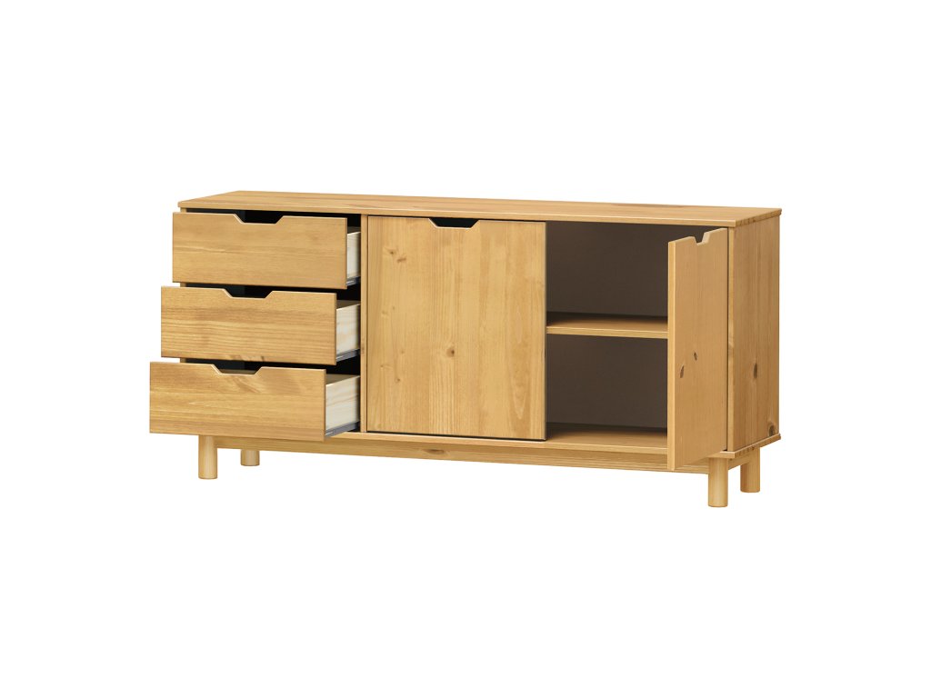 materiál masiv borovice voskovaná v medovém odstínu 3 zásuvky s kovovými pojezdy, 2 dvířka, 1 policeDoplňkové parametry