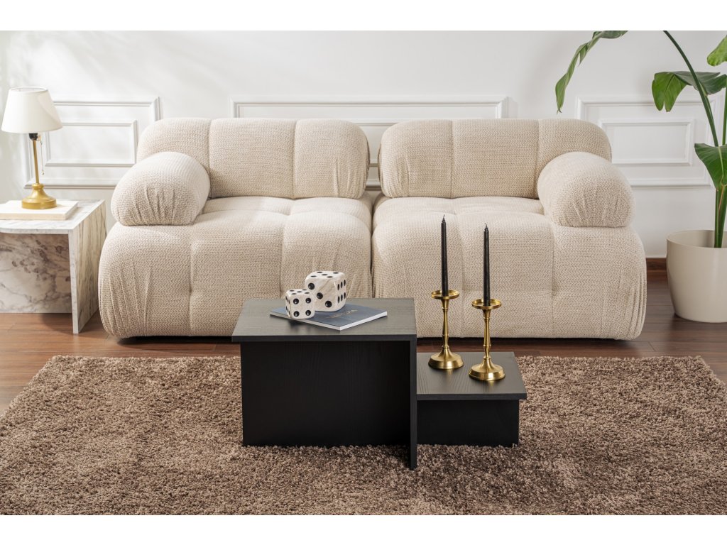 Sytá barva Wood Black tohoto konferenčního stolku bez námahy doplní jakýkoli stávající interiér, ať už je váš styl moderní, tradiční nebo někde mezi tím. Jeho čisté linie a minimalistický design z něj činí všestranný kus nábytku, který vylepší vzhled vašeho obývacího pokoje nebo odpočinkové zóny.