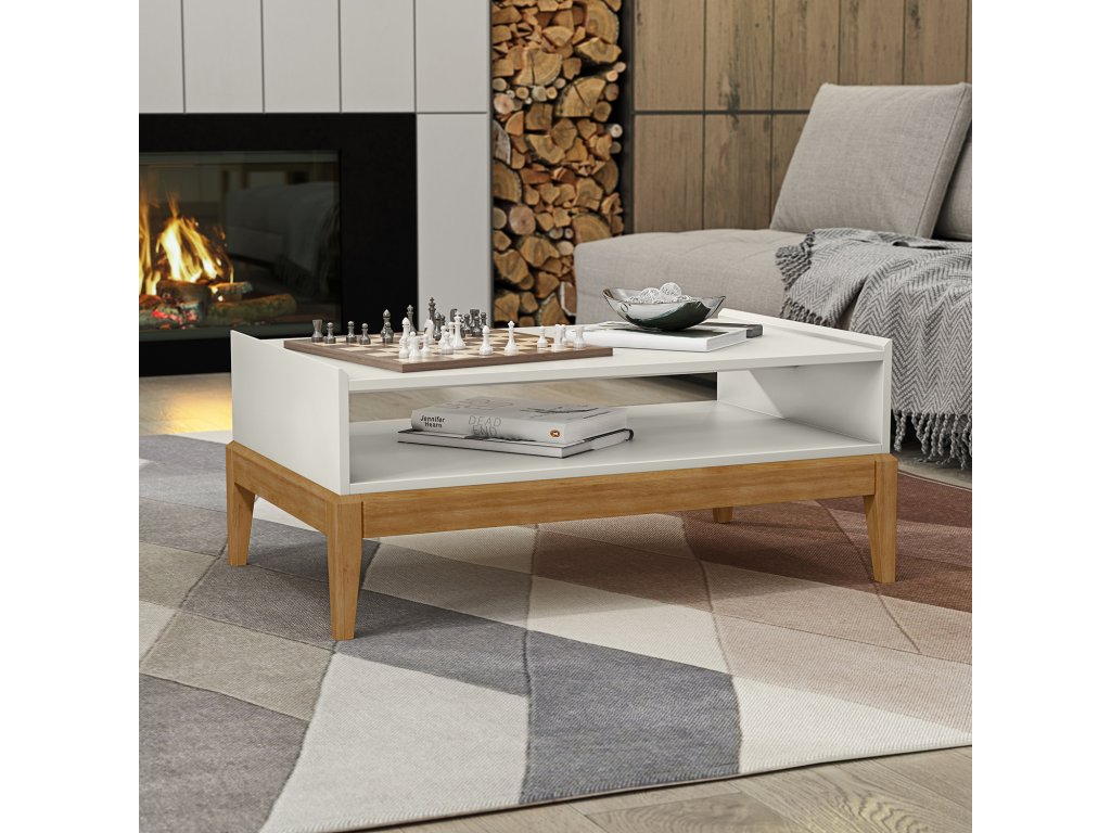 Kombinace bílé barvy s dubovým dekorem dodává stolku moderní a čistý vzhled. Materiál masiv borovice v kombinaci s MDF zaručuje pevnost a dlouhou životnost.