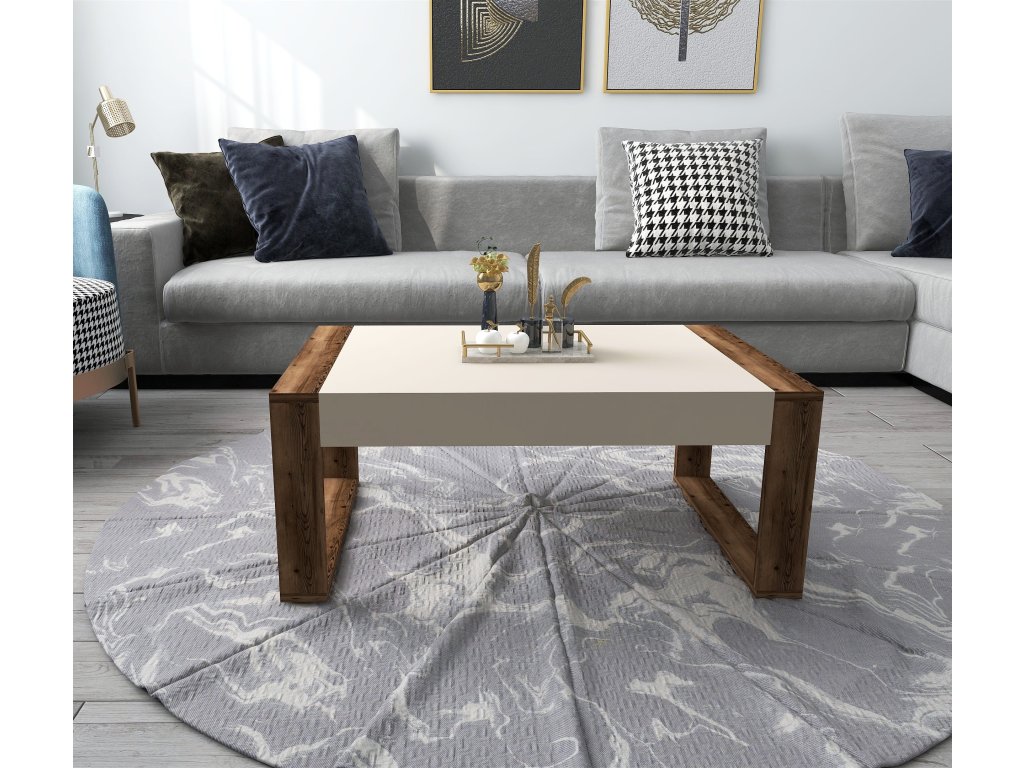 ZACHARO konferenční stolek, ořech světlý / béžová