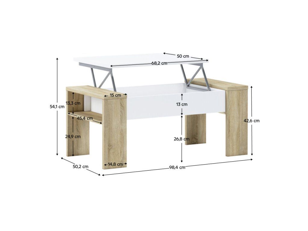 Praktický konferenční stolek PULA, dub sonoma/bílá, výškově nastavitelný