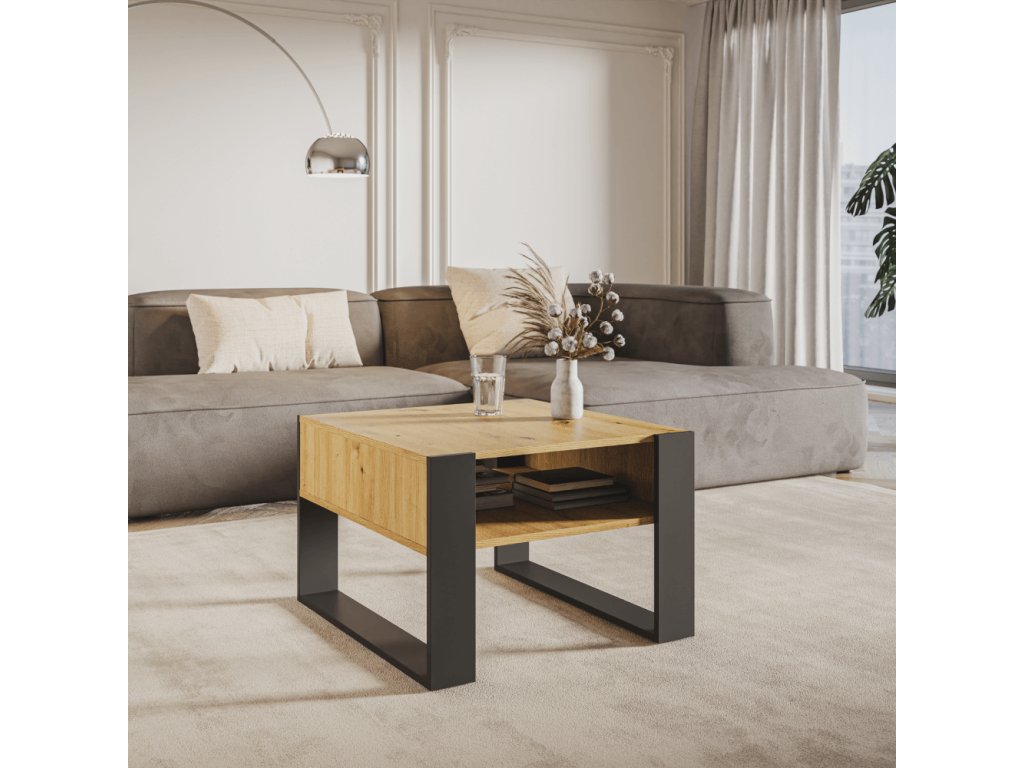 Konferenční stolek, dub artisan/černá, CARA 2