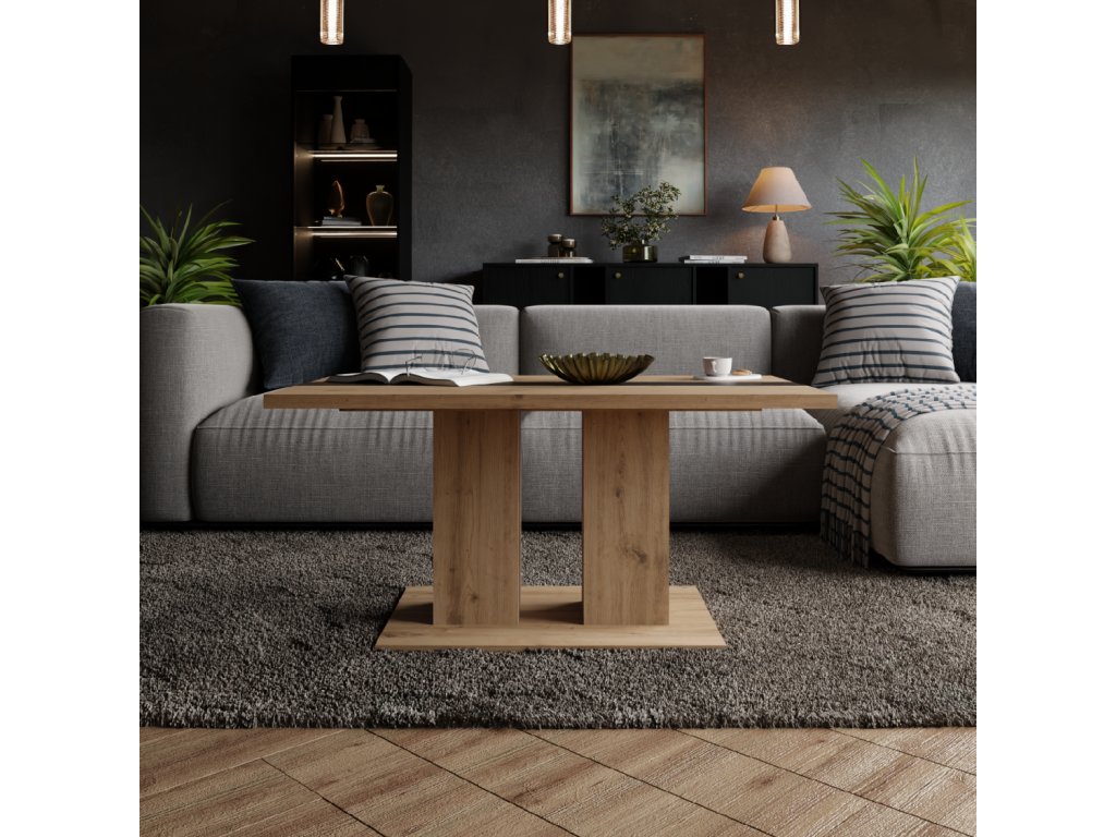 Konferenční stolek Boris artisan nabízí dostatek prostoru pro odložení nápojů, knih, elektroniky i odpočinku nohou. Je ideální do obývacího pokoje nebo kanceláře.