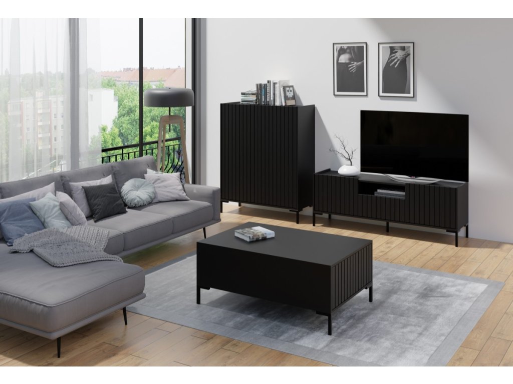 Elegantní černý design se hodí do různých stylů a velikostí místností, doplní vaši obývací sestavu.