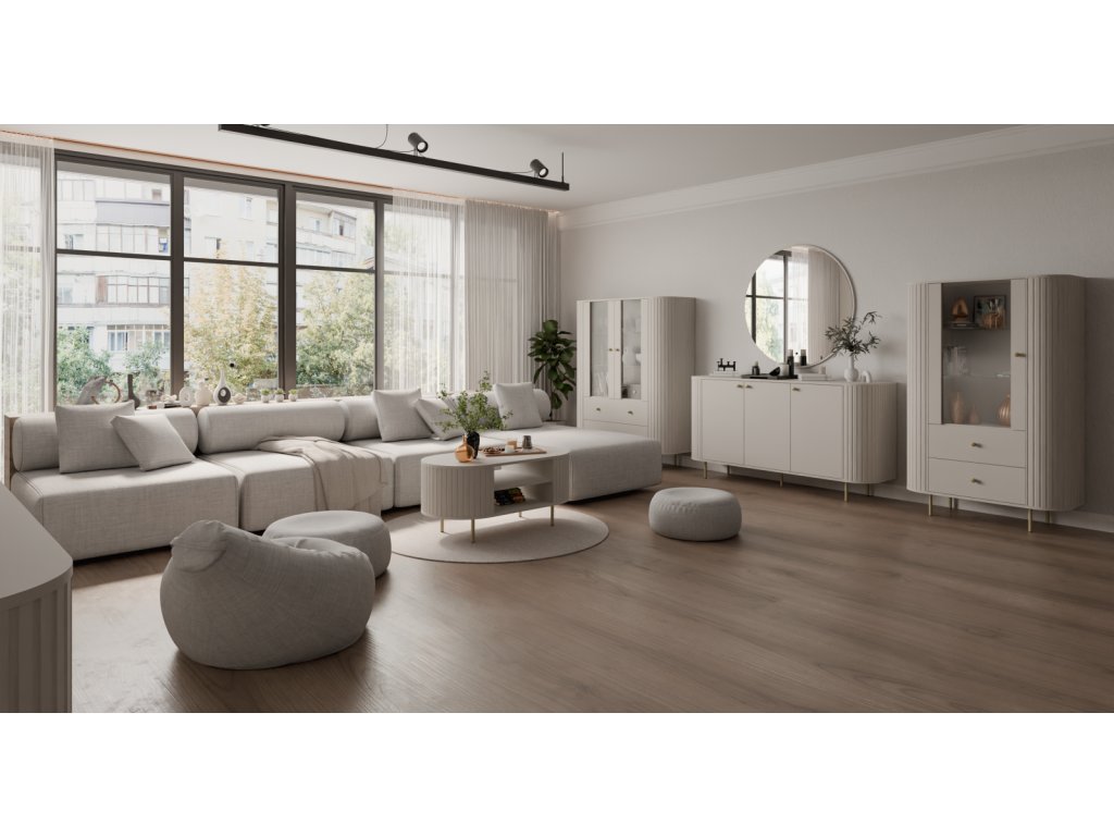 Objevte kolekci nábytku Orvelo, která představuje minimalismus ozvláštněný precizními frézovanými detaily a vnáší do interiéru zcela nový rozměr elegance. Barevné provedení v jemných zemitých odstínech tvoří harmonický základ, černé a zlaté akcenty dodají lehkost a moderní charakter. Kolekce byla navržena tak, aby každý prvek – od vitrín a komod až po konferenční stolky a TV skříňky – mohl být použit samostatně a zároveň ladil jako celek.