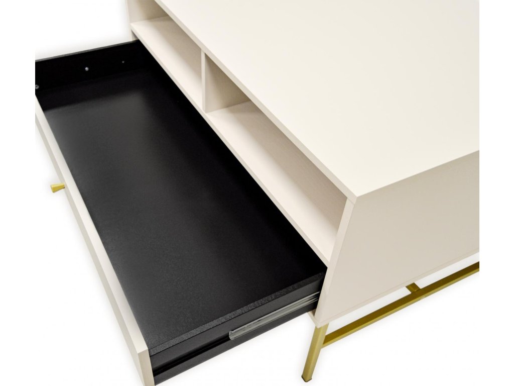 Barva úchytů v zlaté barvě dodává stolku nádech luxusu a elegance. Jednoduché linie a přírodní odstín béžové se hodí do moderních i tradičních interiérů.