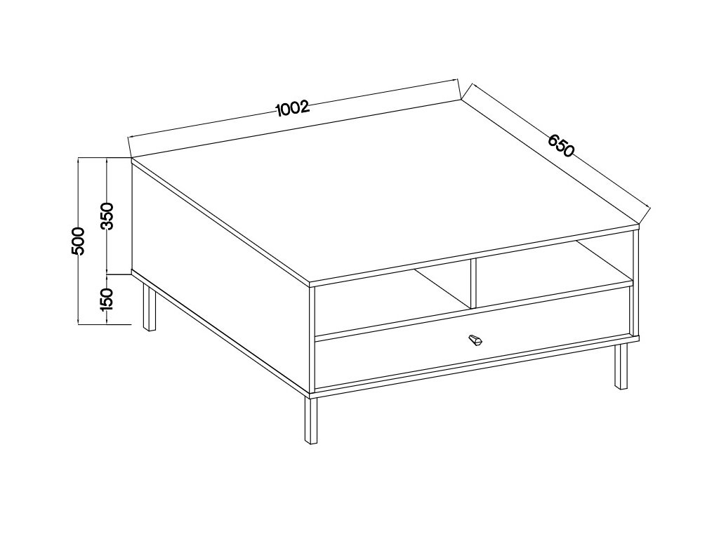 Stolek má rozměry vhodné pro většinu obývacích pokojů, s dostatečnou plochou pro odkládání předmětů a stabilní konstrukcí.