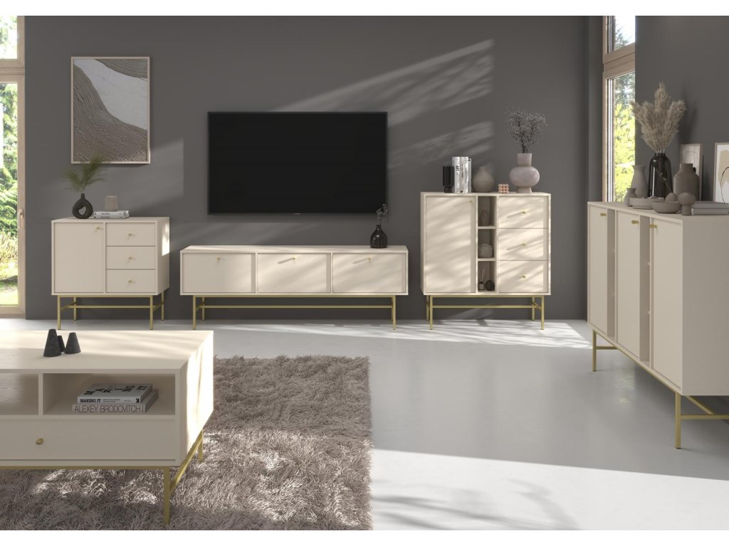 Série Tomila nabízí noční, TV i konferenční stolky, vitríny a komody v široké škále tvarů, barev a typů noh.