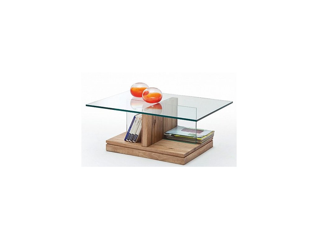 Skleněnou desku konferenčního stolku LENNART doplňuje tělo a pevný podstavec v barvě přírodního dubového dřeva. Sklo je použito i na důmyslné rozdělení dolního prostoru pod horní deskou, a tak vytvoří i několik praktických polic.