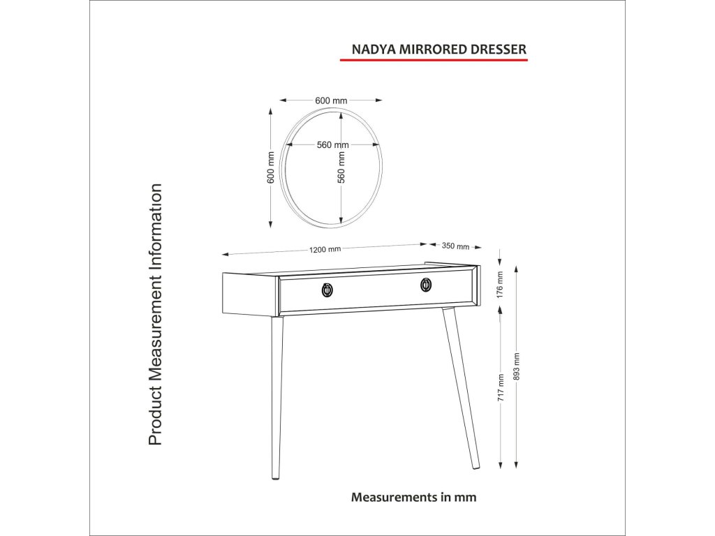 - Sestava obsahuje: Konzolový stolek (š120 x h35 x v90 cm), nástěnné zrcadlo (š60 x h2 x v60 cm)