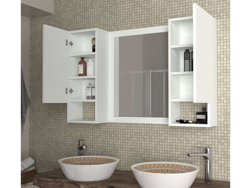 Skříňka je vyrobena z kvalitního LTD materiálu a skla, což zajišťuje její pevnost a moderní vzhled. S rozměry 119 x 75.6 x 21.3 cm nabízí dostatek úložného prostoru díky kombinaci skříněk a regálků. Bílé provedení dodává skříňce svěží a čistý vzhled, který se hodí do každé koupelny.