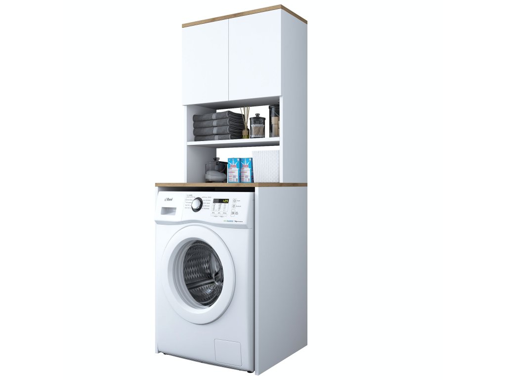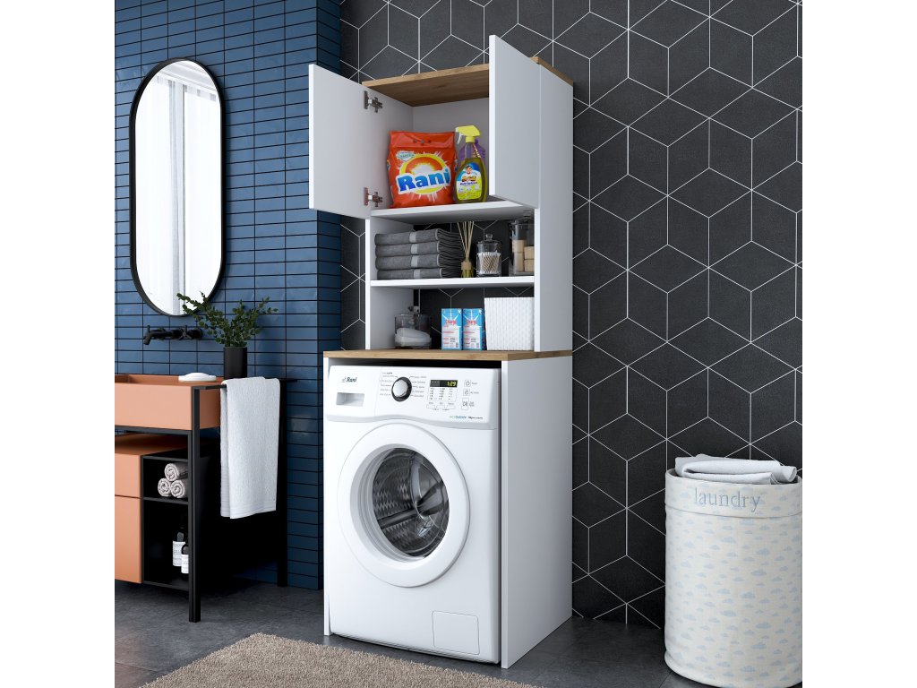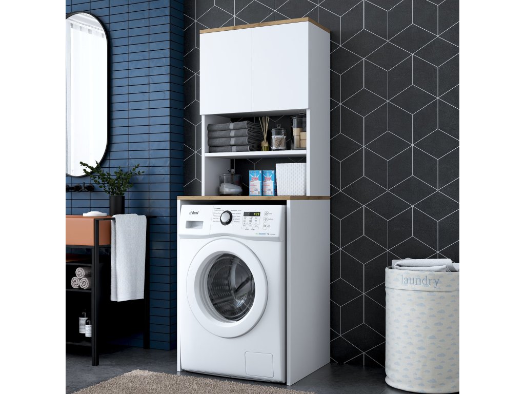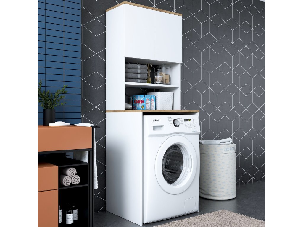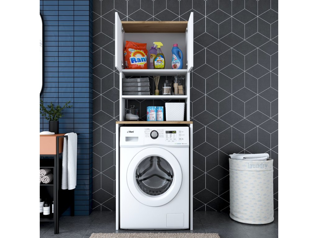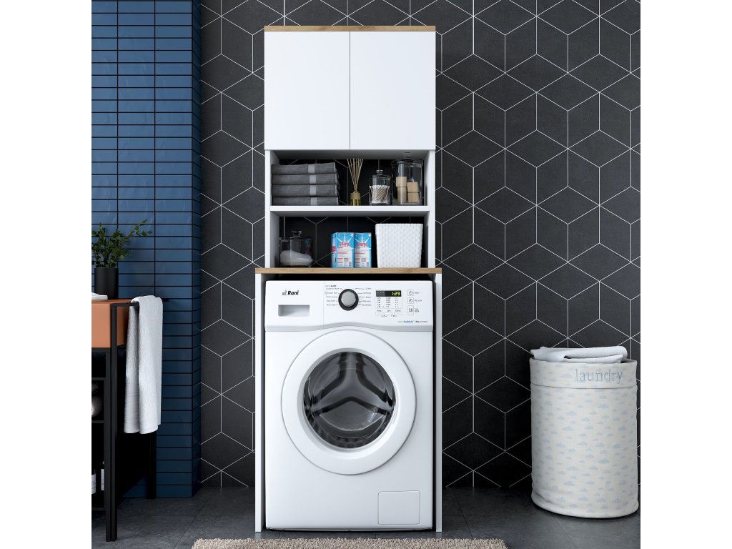 Skříňka OVERTON nad pračku nabízí efektivní využití prostoru a dostatek úložného místa. Ideální pro uspořádání koupelnových potřeb a drobností.