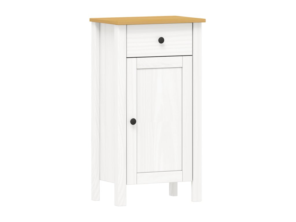 Skříňka je vyrobena z masivní borovice s bílým a bukovým provedením, váží 10 kg a je dodávána v balení karton 1 ks.