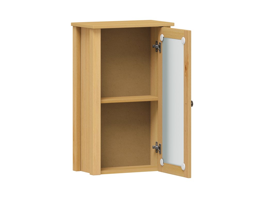 Materiál z masivní borovice je upraven tak, aby odolával vlhkosti a běžnému použití v koupelně.