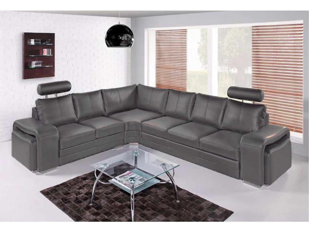 Luxusní šedá kožená sedací souprava Endy levá, 3m, polohovací opěrky