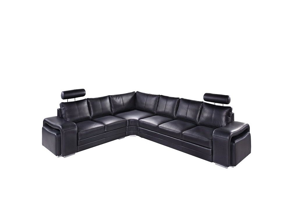 Černá kožená sedací souprava Endy pravá, 316 cm, moderní design