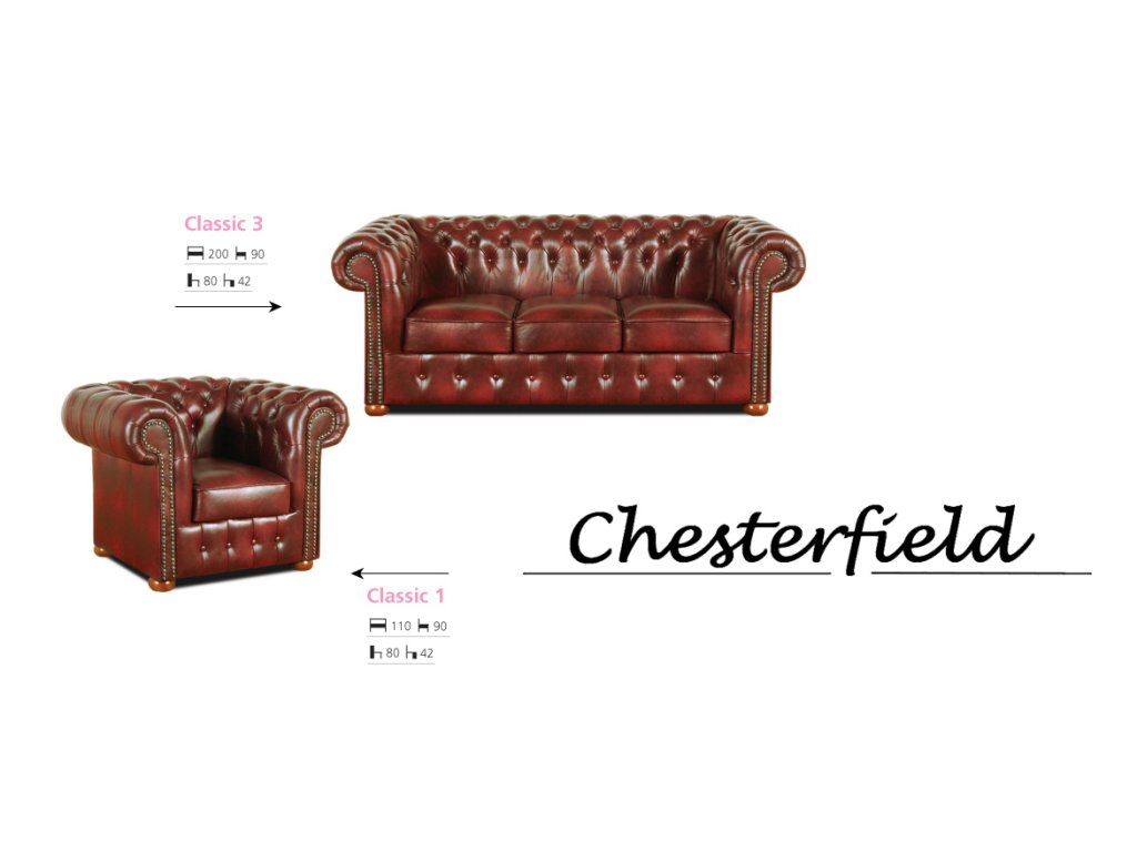 Objevte nadčasovou eleganci a prvotřídní pohodlí s koženými křesly a pohovkami Chesterfield. Každý detail od klasického hlubokého prošívání až po luxusní pravou hovězí kůži zaručuje jedinečný styl, který povýší váš domov či komerční prostor na novou úroveň. Vynikající řemeslné zpracování zaručuje nejen krásu, ale i dlouhou životnost. Pohovky Chesterfield jsou k dispozici v různých velikostech od křesel, dvoumístných a třímístných pohovek, až po prostorné čtyřmístné, rohové a atypické varianty.