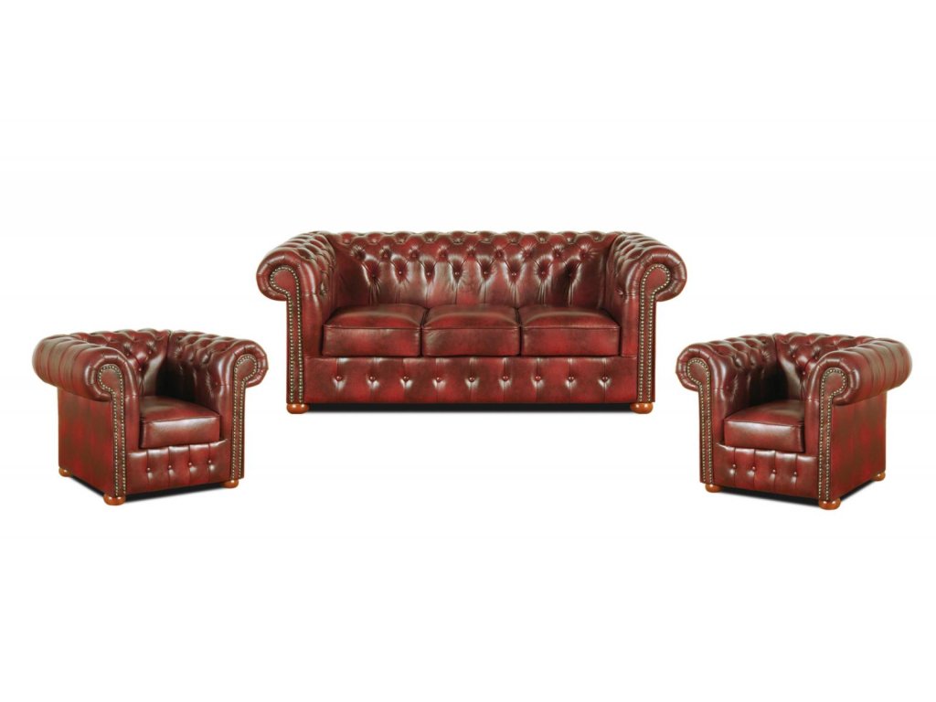Sedací souprava Chesterfield Classic 3+1+1 kůže bordó