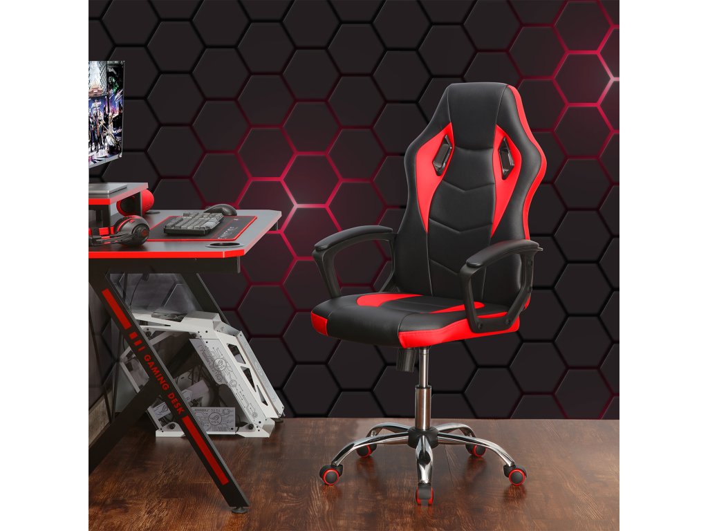 Design černé a červené kombinace se hodí do moderních kanceláří i domácích pracoven. Potah z imitace kůže je snadno udržovatelný a odolný proti opotřebení.