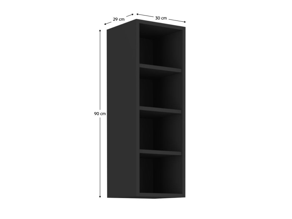 Horní policová skříňka, černá, ARAKA/MENZO/SIBER 30 G-90 OTW