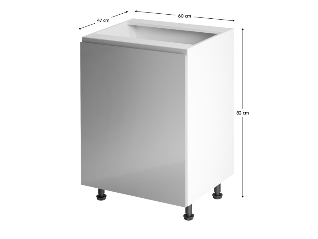 Rozměry 60x47x82 cm umožňují snadné začlenění do sestavy kuchyňské linky AURORA. Možnost dokoupení pracovní desky a dalších doplňků pro kompletní řešení.