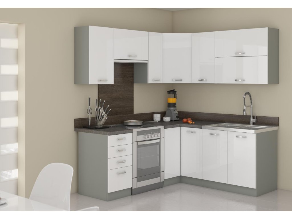 | Kategorie: | Kuchyňská linka Bolzano bílý lesk/šedá |