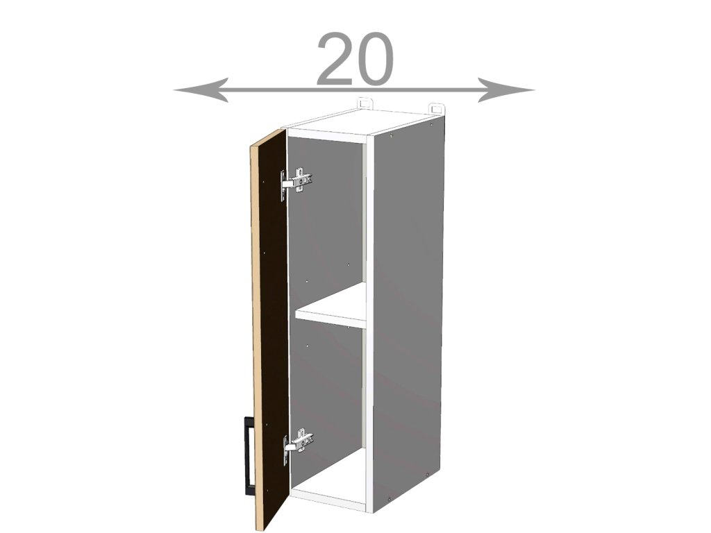 Kuchyňský sektor Capri, horní regál, šířka 20 cm, 1 dvířko, korpus grafit, dvířka dub Craft bílý. Představujeme vám kuchyňský sektor Capri - nejlevnější kuchyni s možností poskládat si vlastní kuchyňskou sestavu ze skříněk dle svých potřeb a prostoru. Kupujte chytře a výhodně! Kuchyňská linka na míru vás nemusí stát majlant. U kuchyně Capri máte na výběr víc jak 10 barev kuchyňských dvířek jak v dřevodekoru, tak v unikolorech. Zvolit si lze i barvu korpusu, takže výsledná kuchyňská linka na míru se bude krásně hodit do vaší kuchyně jak rozměrem tak barvou. Závěsy horních skříněk (v ceně) jsou bez možnosti regulace. V nabídce též regulovatelné závěsy. Výhodou je, že úchyty skříněk nejsou součástí balení, objednávají se zvlášť, takže je možné si vybrat úchyt dle vlastního vkusu. V naší nabídce najdete více jak 10 typů. Dvířka jsou přichystané pro úchyty s roztečí 128 mm.Doplňkové parametry