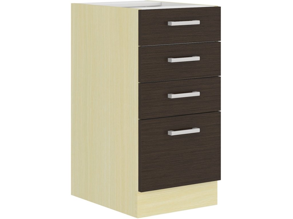 D40S/4 dolní skříňka CHAMONIX II nabízí čtyři prostorné zásuvky pro uspořádání kuchyňského náčiní, příborů i drobného vybavení. Díky kompaktním rozměrům se snadno integruje do menších i větších kuchyní.