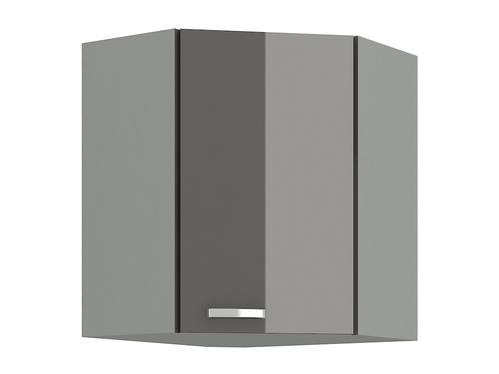 WRP horní rohová skříňka GREY pravá efektivně využívá prostor v kuchyni, ideální pro uskladnění nádobí a kuchyňských potřeb v rohu místnosti.