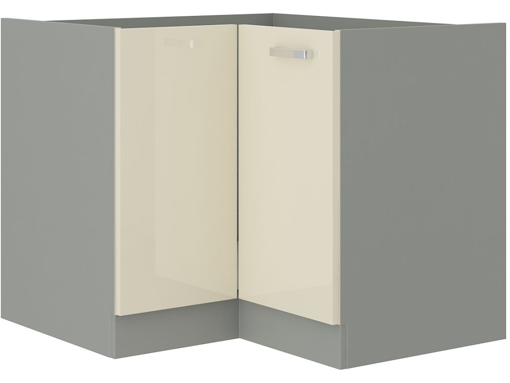 DRP dolní rohová skříňka KARMEN levá využívá prostor v kuchyni efektivně, ideální pro rohy kuchyňské linky. Umožňuje snadný přístup k uloženým věcem díky levému otevírání dvířek.