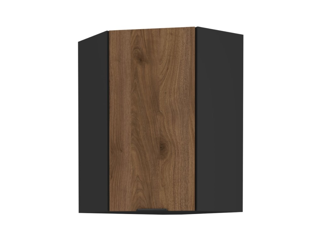 Horní rohová skříňka, ořech okapi/černá, MENZO 60x60 GN-90 1F