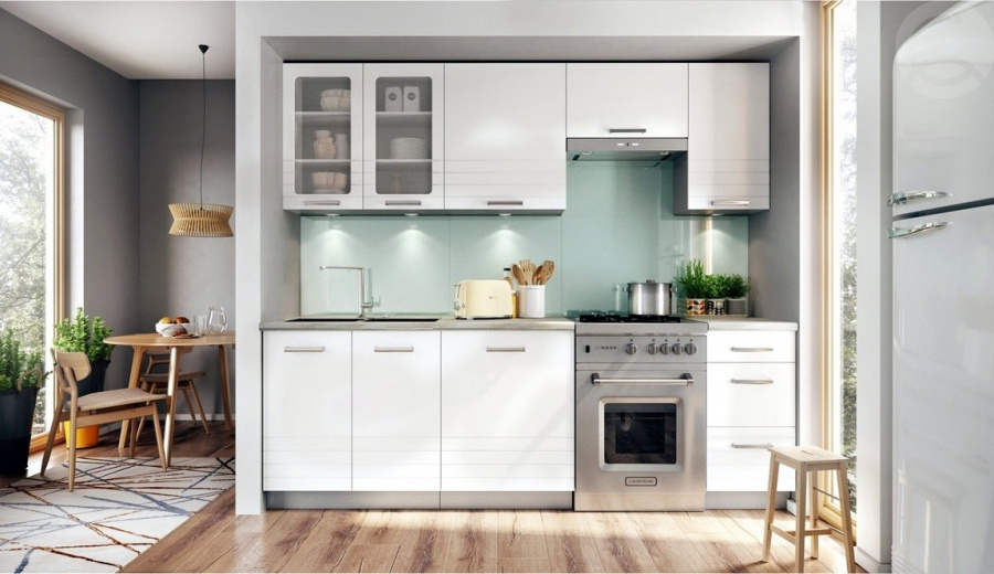 Elegantní kuchyně PALMYRA se prodává jako sestava v typizovaném rozměru, ale je možné si ji poskládat i po skříňkách na míru své kuchyně. Níže naleznete jak typizovanou kuchyni, kde si můžete jen dokoupit další skříňky, tak i skříňky, ze kterých si jednoduchým zakliknutím vytvoříte vlastní sestavu. Pokud budete mít zájem o více kusů jedné skříňky, je třeba ji doobjednat zvlášť až po vložení celé sestavy do košíku. ( Tlačítkem ZPĚT ve vašem prohlížeči se vrátíte do nabídky a po zakliknutí obrázku té dané skříňky si ji v potřebném množství doplníte do košíku ). Kuchyně PALMYRA má horní skříňky výšku 72 cm, hloubka 29 cm a dolní skříňky výšku 85 cm ( včetně pracovní desky ), hloubka 45 cm, dvířka jsou vyrobena z MDF v barvě matná bílá. Barva korpusu a soklu je šedá platina. Sklo ve vitrínách je matné Satinato. Skříňky neobsahují pracovní desku v ceně, tu je třeba doobjednat. Dodáváme v demontovaném stavu.