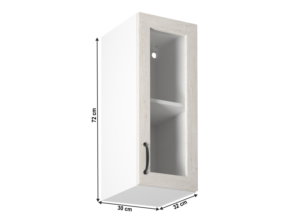 Horní skříňka s dvířky se sklem, ROYAL G30SMateriál: korpus je vyroben z kvalitní laminované dřevotřísky / kovová úchytka / sklo