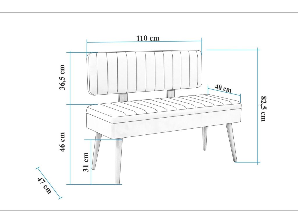 Lavice má šířku 110 cm, výšku 82,5 cm a hloubku 40 cm, což je ideální do různých prostorů.